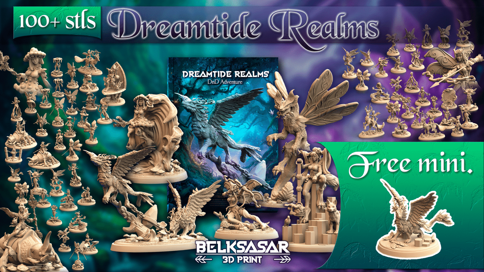 You’ll receive exclusive campaign miniatures, over 100 printable, pre-supported STL files with exceptional detail, ready to bring your faerie and dreamlike worlds to life.