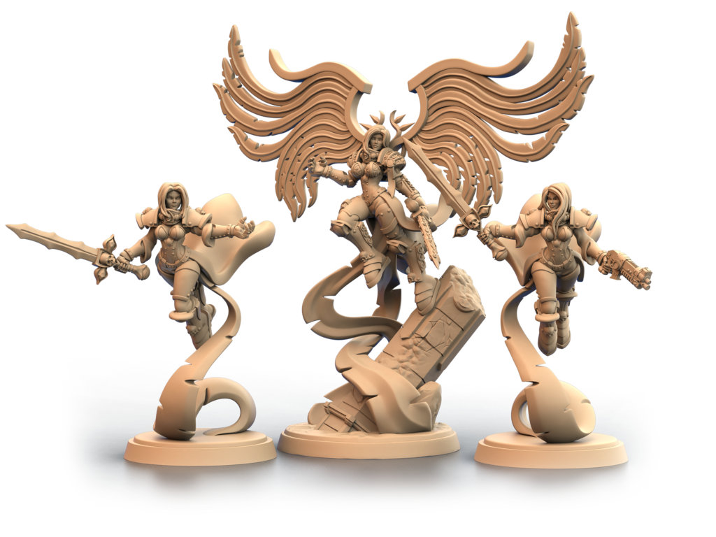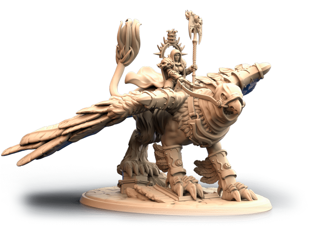 In the glare of battle, an immense sword rises above all creatures, with a fierce look and unparalleled beauty, the flapping of its wings indicates the end of the fight.